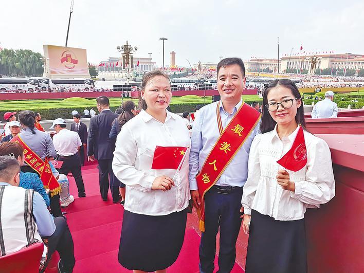 Wang YongQing,Peng Yusheng和Du Fengqin(从左到右)被邀请访问北京参加仪式。 (面试官提供的图片)