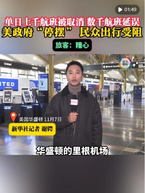 当地时间7日,美国联邦政府“关门”进入第38天。最长的“停摆”对美国民航业造成了近乎灾难性的影响。政府减少航班的措施导致1000多个航班被取消,造成大范围的航班延误和机场混乱。为缓解交通短缺压力,降低航空安全风险,美国联邦航空局决定从7日开始逐步减少美国40个主要机场的国内航班,11月14日减少幅度将逐步扩大至10%。在里根机场,长时间的航班延误令旅客感到沮丧。乘客玛丽安说,她的航班最初被取消,最后她改乘了另一趟航班。结果,一个航班也延误了。截至当地时间7日,美国共和党和民主党仍未显示出就结束联邦政府“关门”达成协议的迹象。达菲警告说,如果“停摆”仍在继续,航空公司可能会被要求削减最多20%的航班。 (记者:胡友松、谢锷;视频:王玉珏)