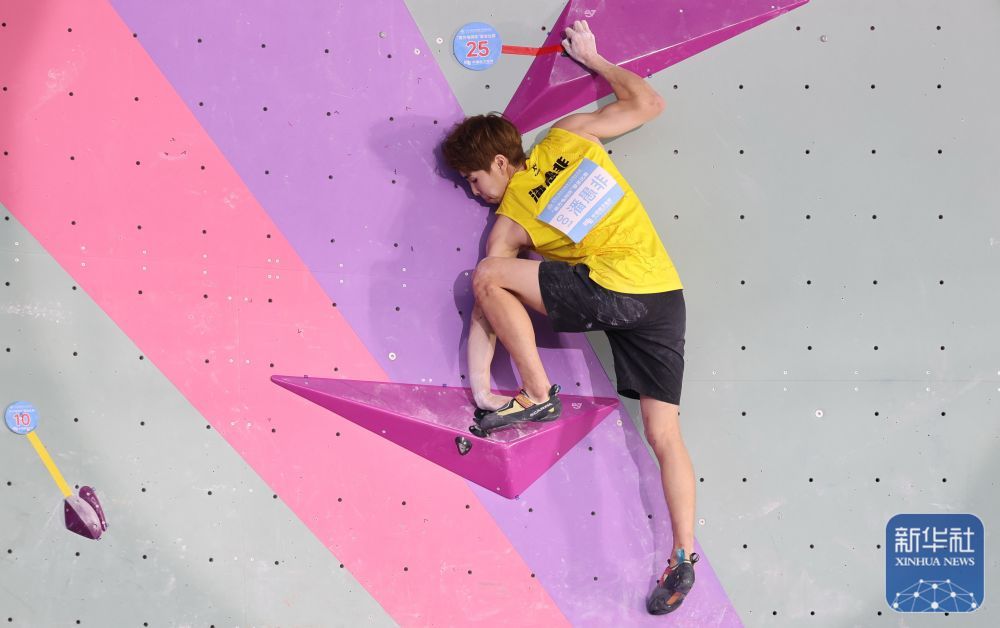 11月15日,第十五届全运会攀岩项目男子攀岩决赛在广州举行。湖北队选手潘宇飞夺得冠军。 ↑ 湖北队球员潘宇飞在比赛中。他最终赢得了冠军。新华社记者 杨世耀 摄 ↑ 湖北队球员潘宇飞在比赛中。新华社记者杨世耀摄↑湖北队球员潘宇飞完成比赛后庆祝。新华社记者晋美多吉摄↑湖北队球员潘宇飞(右一)赛后向其他球员表示祝贺。新华社记者杨诗瑶摄↑广东队球员胡俊哲在比赛中。他最终获得??第二名。新华社记者晋美多吉摄↑广东队球员胡俊哲在比赛中。新华社记者杨诗瑶摄↑广东队球员胡俊哲完成比赛后庆祝。新华社记者 晋美 摄多吉↑广东队球员姚金伟在比赛中。他最终获得??第三名。新华社记者晋美多吉摄↑比赛中的广东队球员姚金伟。新华社记者杨世耀摄↑广东队球员姚金伟完成比赛后庆祝。新华社记者杨世耀摄↑夺冠湖北队潘宇飞(中)、获得季军广东队胡俊哲(左一)在颁奖典礼上与教练合影。新华社记者晋美多杰 摄