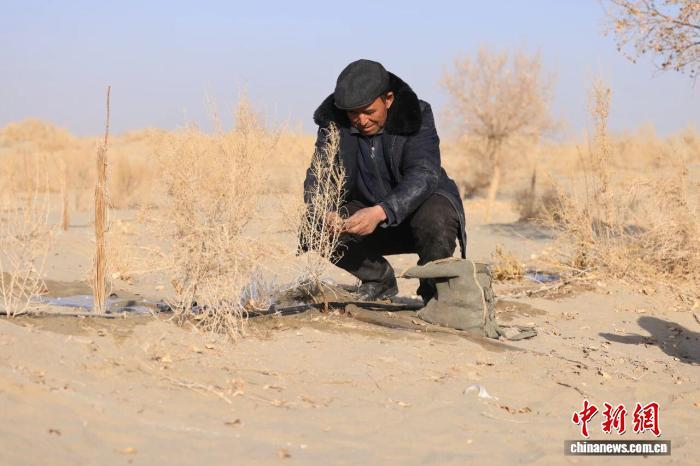 阿卜杜勒-莫门特深知,在沙漠植树时,“种七份,保护三份”,更重要的是需要科学。在多年的植树过程中,他和乡亲们先在沙丘下部种上芦苇编织的草格,锁住流淌的黄沙,然后小心翼翼地将胡杨、梭梭幼苗群体插进土里。如果埋得太深,它们就不会发芽;如果埋得太深,它们就不会发芽。如果埋得太浅,它们很容易爆炸。每株植物都必须反复调整其深度。遇到风沙天气,一切都在与沙粒对抗。一株、十株、一百株……慢慢地,草格连成一片,幼苗在沙里生根发芽。